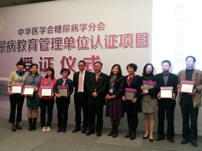 认证评审由全国各大医院14位专家共同根据学组制定的六项标准评分,经严格评审,全国共8家医院被评为“中华医学会糖尿病学分会糖尿病教育管理示范单位”,我院以高分位居榜首。