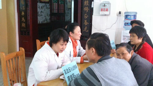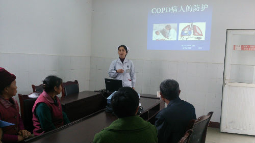 到达目的地后大家立即投入工作,为200余人进行了生命体征测量,包括身高、体重、血压、氧饱和度等,其中约有三分之一的人员在测量过程中疑似高血压,又接受了两次血压测量确认,到采血室进行指尖采血检测血糖;有 100余名高血压、糖尿病患者进行了抽血及小便化验。8名护士为现场就诊病患进行健康问卷调研,共填写健康问卷及高血压问卷300余份。另外,护理人员针对乡村百姓最常见多发的COPD、糖尿病、高血压等病症准备了相关的PPT,进行了疾病防治知识宣教。