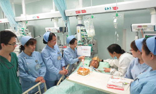 10月4日下午,家属接待时间结束后,医护人员为陈婆婆送上了生日祝福和礼物,祝福她生日快乐,早日康复!温暖的祝福,芳香的蛋糕,使陈婆婆及家属非常感动,他们对我院人性化的关怀给予了高度评价。