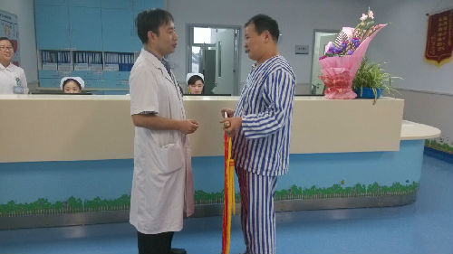 在即将出院之时,为了表达感激之情,宋永科同志及其家人送上了感恩的锦旗,他握着屈云副主任的手说:"千言万语也不能表达完自己的感激之情,刚开始根本没想到会恢复到现在的样子,而如今我恢复得这么快、这么好,最应该感谢的就是华西的全体医务人员,谢谢您们!”