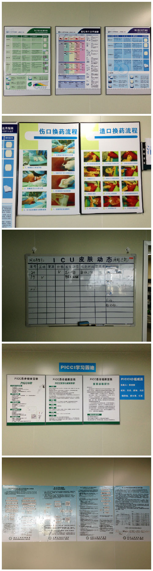 为响应我院“以评促建、持续改进、质量安全、人人有责”的号召,上锦ICU以“三甲复审”为契机,积极将ICU专科知识“皮肤伤口敷料介绍”、“伤口换药流程”和本科护理老师何兰萍制作的“ICU皮肤动态表”、“PICC置管专业知识”专科操作等,以及“压疮管理交接工作流程”、“护理不良事件管理制度”、“病人跌倒/坠床的防范管理制度”、“ICU危急值报告制度”等优质服务文件在专区展示,方便大家随时翻阅学习,从而提高医护服务水平。