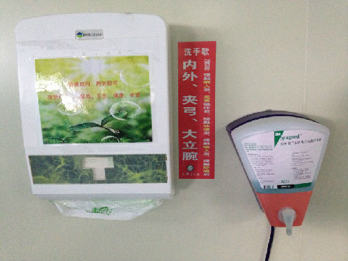 ICU一直是院感控制的重中之重,保持手卫生是降低医院感染发生率最基本、最简单且行之有效的方法。为提高本科室工作人员的手卫生意识,提高手卫生依从性,掌握正确的手卫生时机和方法,上锦ICU感控老师王静创作出“内外、夹弓、大立腕”洗手歌,并将其做成标语张贴在洗手池旁边。此举起到了时刻提醒,强化记忆的作用,进一步强化了科室人员的手卫生意识。
