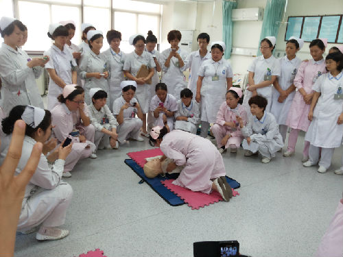 华西医院是国家级区域性医疗急救中心,在重大自然灾害、突发公共卫生事件和疑难重症医学救护工作中起着重大责任。特别是门诊处于医疗急救的前沿,医护人员必须不断强化和更新急救医学新理念和操作技术。为了提高门诊医护人员基础生命支持操作技能,8月12日和8月15日下午16:00,门诊部在临床教学楼4楼临床技能中心组织了“BLS”技能培训和考核。参加此次培训和考核的人员有门诊部主任、科护士长、护士长、门诊部的医护人员(包括退休返聘老专家)和其他工作人员共270余人。担任此次培训和考核的师资是接受过医院护理部、临床技能中心和人力资源部共同举办的业务骨干“BLS”培训和考核合格的苟悦、李琴、李微、伍庆、邹祎等10名护士担任主讲、现场技术示范和统一考核。