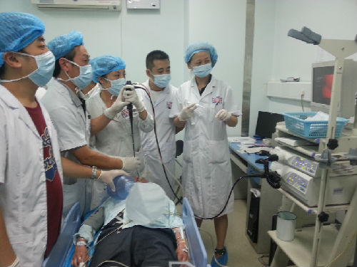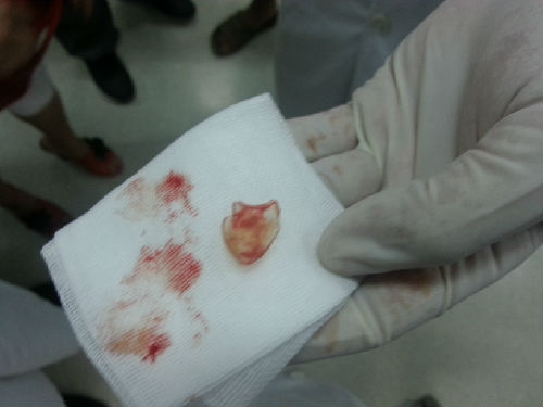 8月13日是七夕节,这一天我院呼吸内科气管镜室让一个被咳嗽折磨了六年的患者从此告别了痛苦。六年前,患者一次口服葡萄糖液,误将装葡萄糖的玻璃碎片吸入气管,从此开始了漫长的咳嗽,终于在最近才查出藏在气管里的罪魁祸首——一块玻璃碎片!下级医院建议他们来华西医院呼吸内科气管镜室就诊!到华西气管镜室已是快下班的时候,呼吸内科气管镜老师一听说病情后就决定加做这个病人。这个危险且难度相当高的气管异物。第一次镜子下去发现在右主支气管的位置,由于病人呛咳十分厉害,而且玻璃碎片比我们想象的大的多,向上提取的过程中完全可能划伤气管,气管镜室朱老师费了好大的力终于将玻璃夹到声门下,但问题来了,玻璃太大过不了声门,被卡在声门下缘并少量出血,强行拔就会割断声带并有大出血、窒息的风险!气管镜室老师立即请来耳鼻喉科老师急会诊,耳鼻喉老师建议直接请胸外科做开胸取异物!家属和患者急得都快哭了!气管镜室老师没有放弃打电话和麻醉科协商给患者全身麻醉,再次取玻璃,以最好的同时最少痛苦的办法解决这个难题。麻醉后患者不再咳嗽,肌松剂使患者声门开放,第三次镜子下气管里,患者的玻璃由于之前剧烈咳嗽的先后从右主支气管到左主支气管,最后再次回到右主支气管!气管镜老师不停的调整镜子的位置,技术精湛的朱老师万分小心夹起玻璃,并要不停的在气管里调换夹玻璃的位置和方向,以最好的角度同时要能过声门才能被夹出!汗水不止他也全然不顾,九牛二虎之力终于把玻璃顺着喉罩,在气管镜的引导下被夹了出来了!术后把玻璃碎片一量,碎片直径2厘米,宽1.5厘米,大家都惊呆了……气管镜老师的仁心仁术,在这一刻是最好的体现。气管镜老师的坚持和努力,再次避免了患者开胸的巨大痛苦及费用。