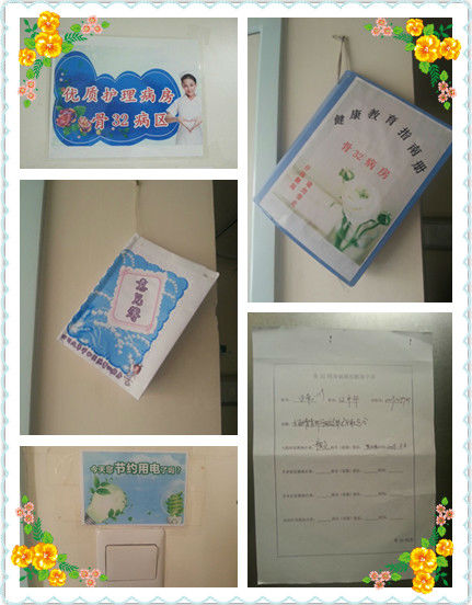 为了更好的迎接医院年度评价,深化优质护理服务,骨科病房推出了许多举措。首先把制度承诺从墙上“请”下来,让优质服务从文件中“走”出来,变被动服务为主动服务,切实按分级护理要求落实了基础护理,一级护理。通过基础护理的有效落实,提高护理服务水平,也增加了病人的满意度。其次,为了更好的落实健康教育,骨科还设置了健康教育签字表。为每一位病人实施入院时、术前、术后及出院前的健康教育并请病人及家属签字,保障了病人的服务质量。再次为了给病人提供温馨舒适的住院环境,骨科的护士长及全体护理人员非常注重环境的布置,如病房内外张贴优质护理服务、防跌倒、禁止吸烟、住院病人作息时间表及在病区入口处放置探视须知的标识,墙上悬挂通俗易懂的健康宣教资料、意见薄等,并在病房电源开关处张贴节约用电等环保标识,以方便住院患者和家属。此举已获得病员及家属的一致好评。