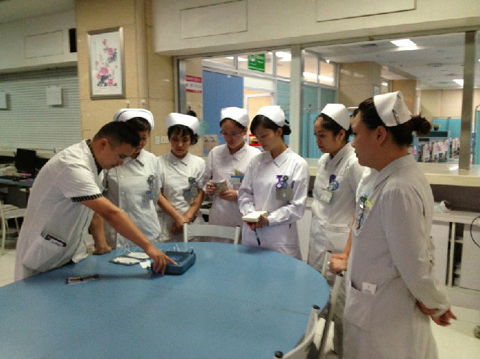 邹医生从便携式除颤仪的适应症、禁忌症、工作原理、电极使用的正确位置等方面进行了深入浅出的详细讲解与说明,并进行了便携式除颤仪的操作流程演练,使护理人员熟练的掌握了便携式除颤仪的操作流程与方法,有利于进一步提高了护理人员专科操作技能和护理质量。
