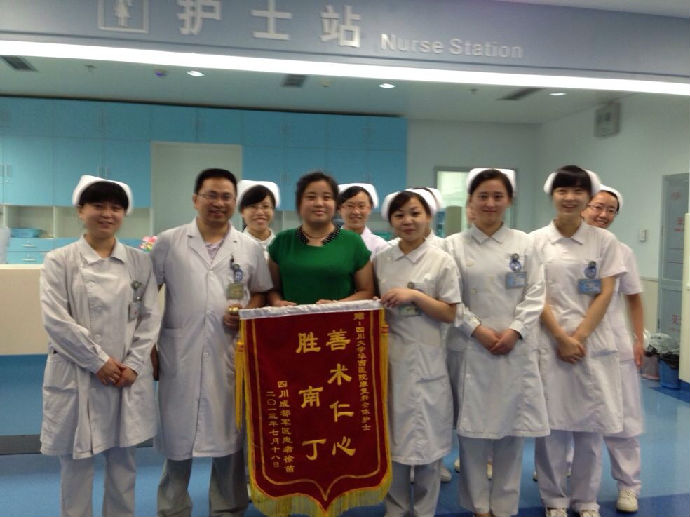 近日,脊髓康复病房的医务人员收到了26床患者徐苗送来的锦旗。这是一位地震伤员,也是一位英雄妈妈。4月20日芦山地震当天,她冒着生命危险抱着儿子勇敢地从楼上跳下,儿子没有受伤,但是她却因为全身多处骨折而躺在了病床上。徐苗刚转到康复科时,全身多处骨折不能自行翻身,经过医护人员的共同努力,现在已经能够站立行走了。