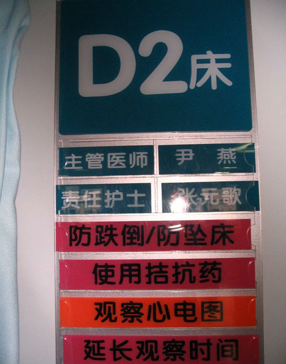 此外,特殊病情提示卡色彩鲜明、简洁大方,直接放置于床头牌的卡槽中,方便医护人员观察病情也利于病房环境的管理。