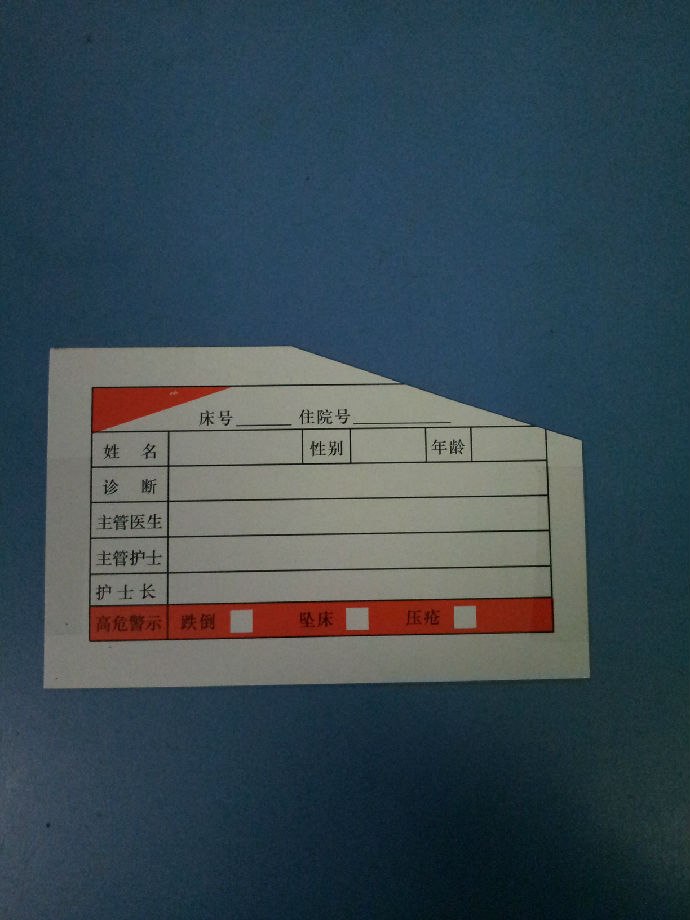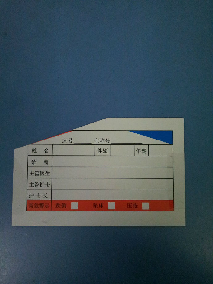 床头标示卡主要反应的是护理级别、主管医生及主管护士,以方便患者及家属知道主管医生及责任护士,同时提示患者疾病的危重程度,是最直接的了解患者护理级别的判断方法。