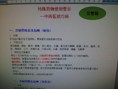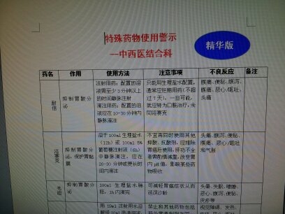 药物的使用及用药后疗效和副作用的观察是护理工作中的重要内容,但由于临床上使用的药物多,更新快,给护理工作带来了极大的困难和挑战。为避免药物使用不规范或使用过程中观察疏漏所导致的严重后果,中西医结合科护理组编写了“中西医结合科特殊药物使用警示”,并于6月18日利用晨交班时间进行了学习和讨论。