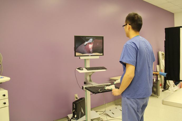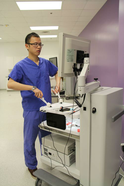 实习期间,郭润碛同学在Toledo大学医学中心国际医学教育负责人、急诊科主任Dr. Kris Brickman和Dr. Munier Nazzal两位教授的指导下轮转了急诊科与血管外科,在临床技能中心进行了腹腔镜操作训练及体验“达芬奇”机器人手术训练。Toledo大学医学中心良好的诊疗环境、规范的操作流程、先进的医疗设备给他留下了深刻印象。
