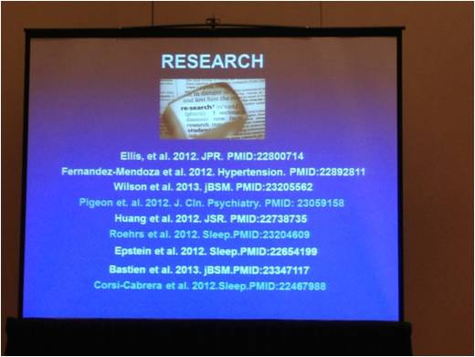 由美国睡眠医学会、美国睡眠研究会和美国行为睡眠医学会等多个学术组织联合举办一年一度的第27届美国睡眠医学大会目前正在巴尔的摩的国际会议中心举行(2013年6月1-5日)。作为会议的重要演讲内容“年度科学成就回顾”(A Year in Review),由宾夕法尼亚大学Michael Perlis教授报告的“行为睡眠医学研究成果年度回顾”中,高度评价了我院睡眠中心于2012年在Journal of Sleep Research发表的一篇关于失眠症病人研究的论文。