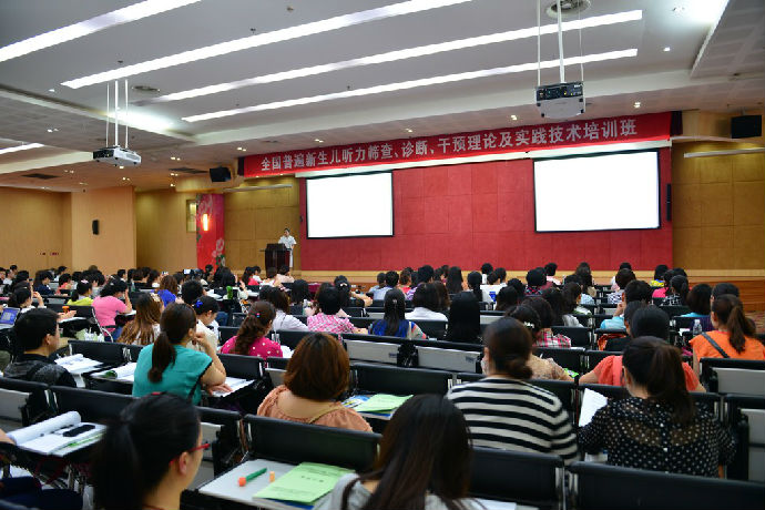 2013年5月25-26日,在我院“全国听力学教育培训基地”成功举办了第五届“全国新生儿听力筛查/诊断/干预理论与实践”培训班。此次培训班由中国康复医学会听力康复专业委员会和我院耳鼻咽喉-头颈外科听力中心共同举办,是响应我国政府对新生儿听力筛查和听力康复工作专业化和从业人员规范化的要求,以及相关专业人员需求而开展的。同时,考虑到新生儿听力筛查工作在四川省开展的迫切性,且此次培训班又是在我省雅安地震受灾后一个月,中国康复医学会听力康复专委会决定面向四川省内学员免除学费。200多名学员来自全国各地,分别为从事听力学、妇幼保健医学、儿科学、耳鼻咽喉科学等专业的医护人员参加了培训。