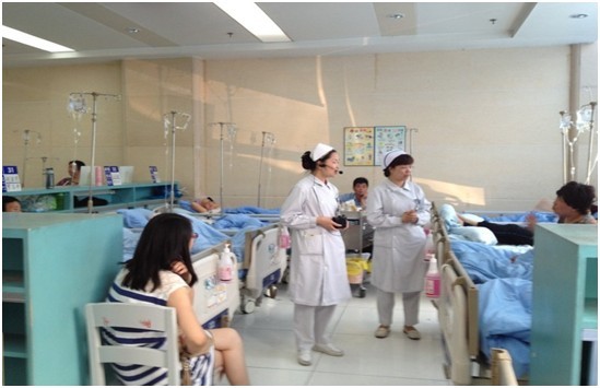 肿瘤日间病房在第三住院楼一楼大厅,病员数量较多,每天需要接待两轮共计超过七十余名患者进行输液治疗,加上病房环境比较开阔,对病员的解释及健康指导工作开展起来很困难。护士在工作中常常需要就一个问题向病员解释多次,做好健康宣教工作也很困难。