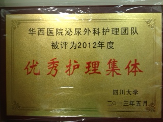 近日,泌尿外科参加四川大学举办的纪念“5•12”国际护士节暨护士表彰大会,被授予2012年度优秀护理集体,是我院唯一获此殊荣的护理团队。