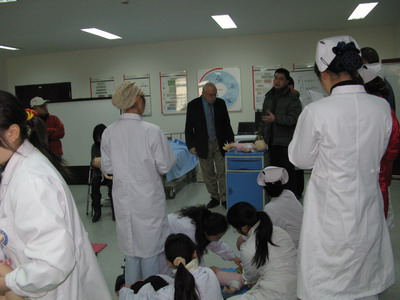1月20-21日,受中国医师协会和我院麻醉科的邀请,美国加州大学旧金山分校麻醉与儿科学博士乔治.A.格雷戈里来院交流。我院麻醉科、急诊科和华西附二院的20多名医护人员接受了培训。 培训期间,格雷戈里教授到手术室对我院麻醉医生进行了具体指导,在麻醉科做了《胎儿手术麻醉》的讲座,还在模拟教学中心对医护人员进行了新生儿复苏的模拟培训。