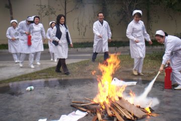 12月30日下午,我院心理卫生中心以冬季防火和消防安全为出发点,在支部书记张麒的指挥下,进行了一次消防疏散演练。演练中,全体医护人员统一听从指挥,有条不紊地进行疏散,通过演练,让医护人员深入地了解消防逃生常识,切实树立起消防意识,真正掌握消防安全知识,并具备自救互救的能力,提高抗击突发事件的应变能力,能有组织、迅速地引导病人安全快速地疏散,并正确使用灭火器以及掌握逃生的方法。