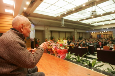 庆典大会首先展示了邓显昭教授90年来不平凡的人生履历和在学术上辉煌的成就。四川大学李虹副校长、我院郑尚维书记分别代表代表学校和医院祝愿邓老生日快乐,身体健康,永远年轻。同时也希望每一位华西职工都要学习邓老严谨的治学态度、高尚的医德、严以律己宽以待人的作风,并把这种优良的传统和文化传承下去、发扬光大。