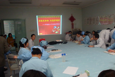 为了鼓励先进、配合医院2009年度先进表彰工作顺利开展,急诊科于12月8日上午9:00在示教室召开了“为快乐加油 为急诊喝彩——我心中的急诊明星”评选会,科室人员到会率99%。会上由万智书记宣读了本次科室先进评选的要求、奖项及名额。全科本着公平、公正和公开的原则,通过无记名投票的方式,推选出院级先进个人2人,科室内各项业务能手共计21名。评选后将获选者全科公示。