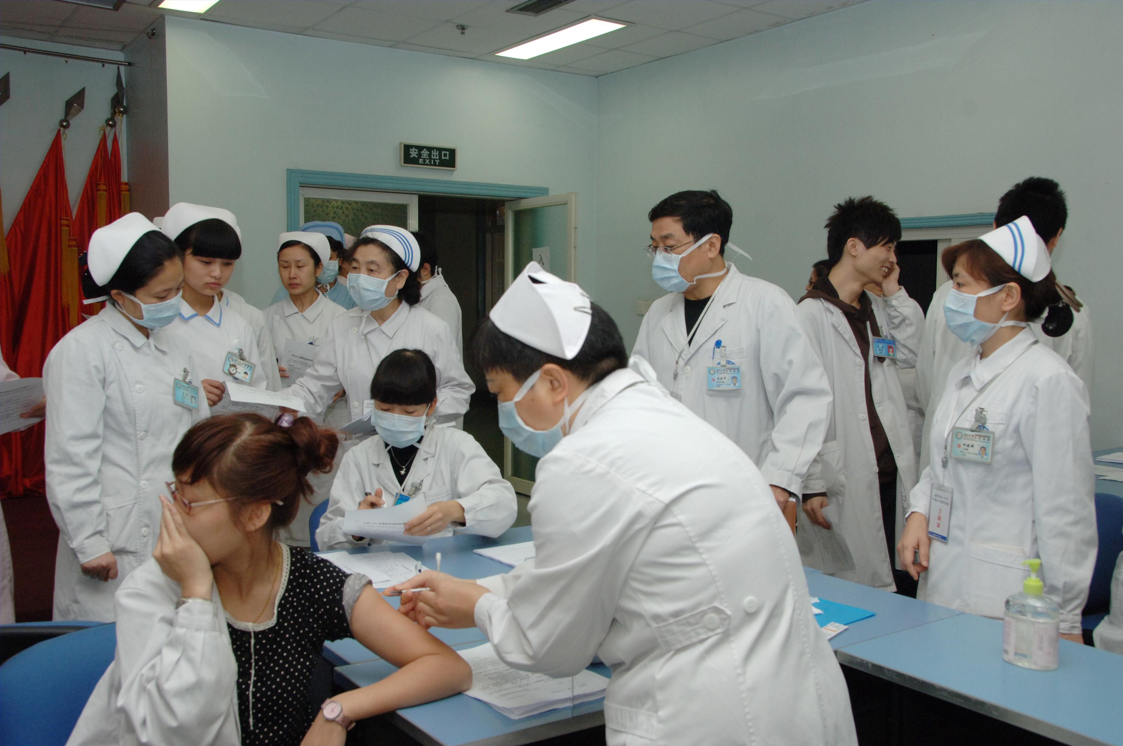 接到为医院职工接种甲型H1N1流感疫苗的通知后,我院领导高度重视,立即制定了工作方案,并成立了以曾智副院长为组长,门诊部、医务部、护理部、急诊科主要负责人组成的华西医院甲型H1N1流感疫苗接种领导小组。考虑到接种甲流疫苗可能发生不良反应,领导小组还专门成立了以护理部成翼娟主任为组长的应急处置小组。