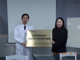 卫生部于2009年开始启动以“提高医疗服务质量,保证人民群众身体健康和生命安全,促进医疗卫生事业健康发展”为宗旨的、具有长效机制的医疗健康促进项目——医疗质量万里行活动。作为该项目的重要组成部分——骨质疏松症防治项目于2009年10有9日在北京启动。全国150余家医院部分院长及相关专家参与并见证了该活动的启动。在启动仪式上,授予北京协和医院、四川大学华西医院、上海市第六人民医院和上海华东医院为“全国骨质疏松症培训与诊疗技术协作基地”。我院李伟民副院长及骨质疏松中心陈德才教授代表医院接受基地铭牌。