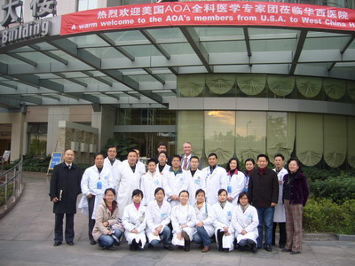 2009年11月17日,华西医院金卡全科与干部医疗科迎来了大洋彼岸的两位贵客——美国整骨协会(AOA)的全科医学专家:威廉•贝克 和 斯科特•莱恩。两位专家来到我院进行了为期两天的讲座及实际操作相结合的临床教学示范和交流活动。