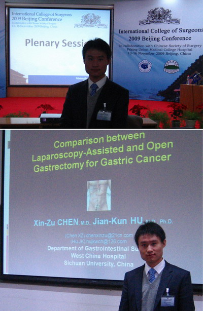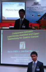 本次会议我院胃肠外科中心陈心足医师参会并获得了口头发言(free paper oral presentation),主题为“腹腔镜辅助与开腹胃癌根治术的比较”(Comparison between laparoscopy-assisted and open gastrectomy for gastric cancer),内容包括3部分:1)腹腔镜辅助胃癌根治术对系统免疫影响的临床对照研究;2)近期可行性、安全性的Meta分析;3)远期生存结果的Meta分析。其中近期评价的Meta分析已于Surgical Laparoscopy, Endoscopy & Percutaneous Techniques发表,并为其他大会发言专家学者引用。该系列研究均有我院胃肠外科志愿者团队(GIVOLT)参与,包括芮元祎、卢青纯、杨晨、杨昆,进行了文献检索、资料提取、数据分析等具体工作。