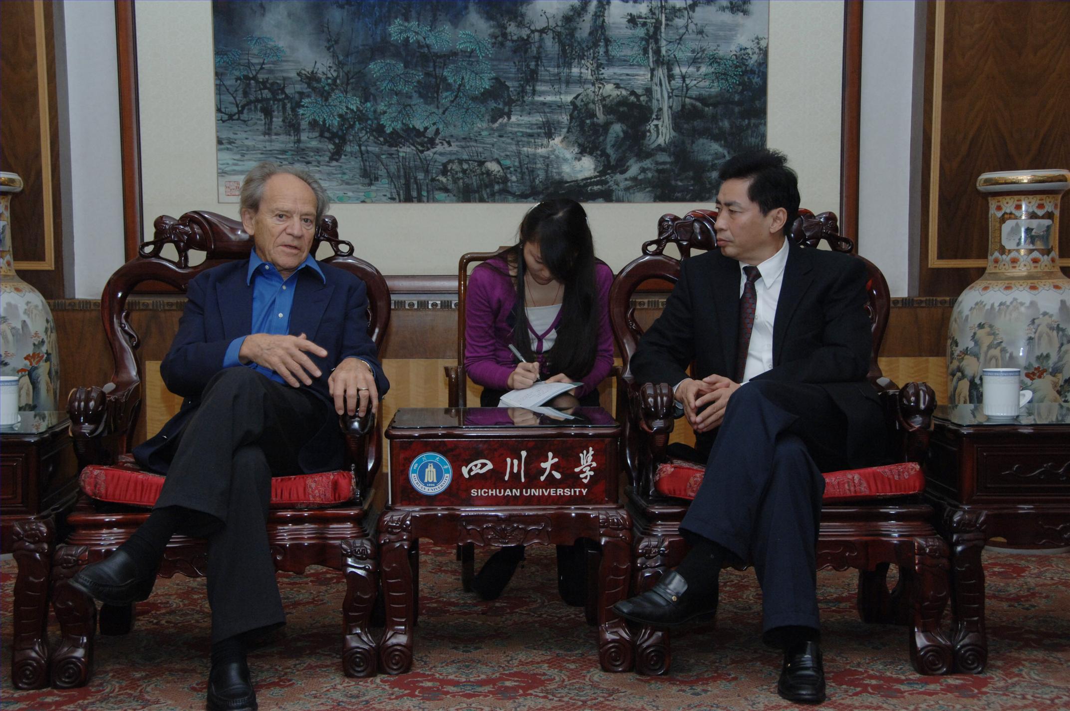 托斯顿.韦素教授对川大的邀请和热情接待表示感谢。他说自己作为川大的荣誉教授,对能够参加国际眼科研究中心的建设感到很荣幸。他高兴地表示,中国改革开放以后,许多外国科研人员可以到中国进行学术交流,特别是此次会见中关于眼科国际研究中心事宜的讨论,给自己留下了深刻的印象。托斯顿.韦素教授表示,自己愿意凭借自身多年参与国际性科学研究的优势,推动川大与国际一流的科研组织和人员的交流与合作事宜;希望借助川大华西医院的良好平台和办北京生命科学研究院的宝贵经验,共同建立起国际眼科研究中心等相关研究机构,切实把研究中心办出实效、办出影响。