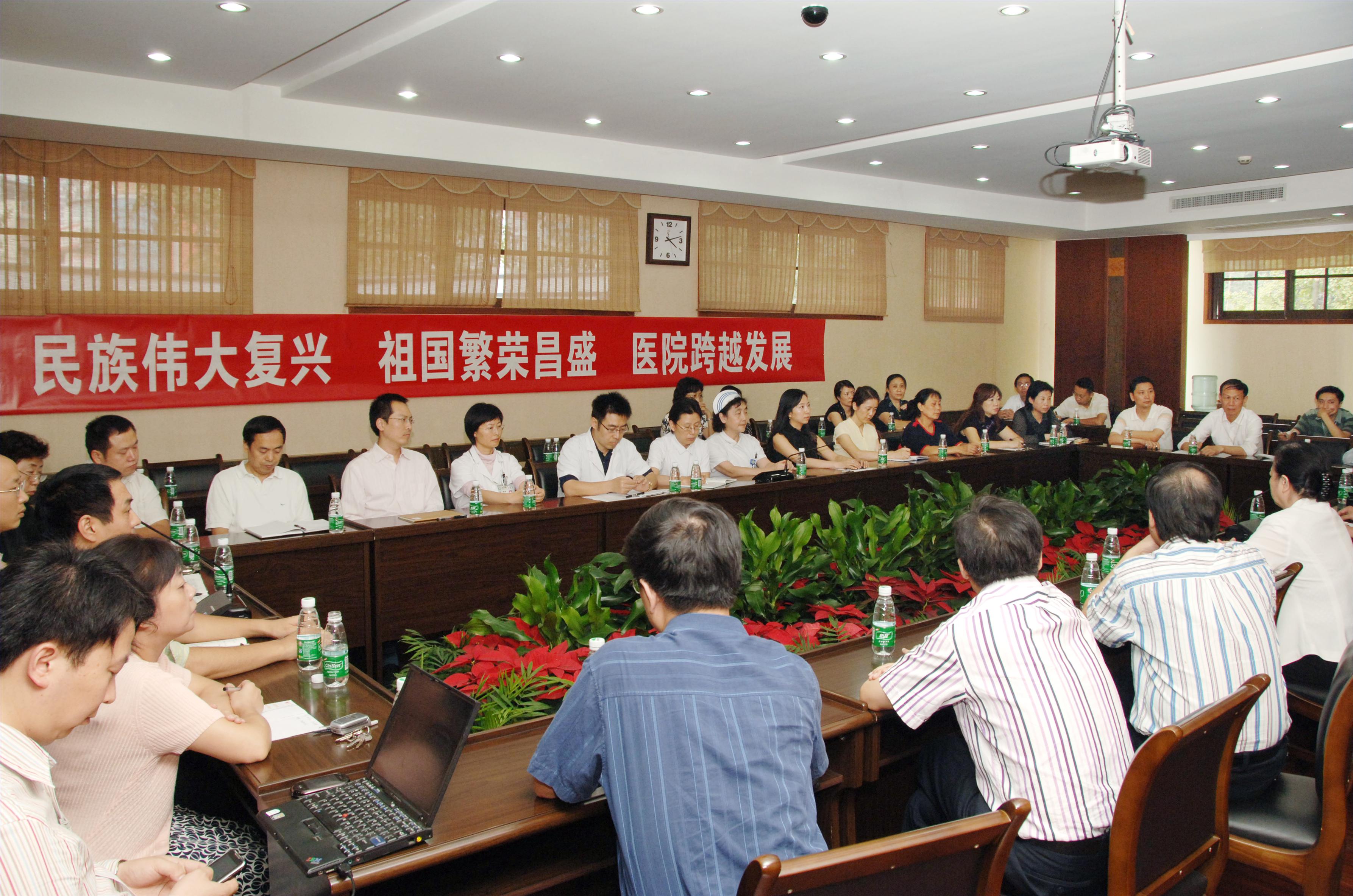 会上,各位参会代表围绕即将到来的国庆60周年,结合自身的体会,畅所欲言。大家从医院硬件建设、医疗、教学、科研、管理等方面60年来的巨大变化,从个人生活质量逐步提高的现实情况,城市建设的日新月异,以及在国外学习和参加学术会议时受到他国人们尊重的亲身体会,看到了祖国60年来发生的翻天覆地的可喜变化,体会到了只有国家的安定团结,才会有个人的前途和发展;只有国家的兴旺发展,才有我们的幸福生活;只有国家强盛,才能屹立于世界民族之林。通过交流,大家深刻领悟了一个颠扑不破的真理,那就是只有在中国共产党的领导下,通过广大人民的不懈努力,中华民族才能走向伟大的复兴,人民才能得到真正的幸福!