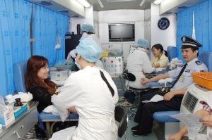 9月25日上午,成都市血液中心的采血车开进医院门诊停车场,短短的半个小时之中,就有不少医务人员来到采血车,他们虽然还在上班,但是仍然抽空来到采血点,毫不迟疑的挽起胳膊,加入到献血行列中。献血完成后,他们又来不及休息,立即投入了紧张的临床工作中。在他们的带领和感召下,不少医学生、病人家属也加入了献血的行列,时间刚过中午,就完成了一般采血点一天才能完成的采血量。