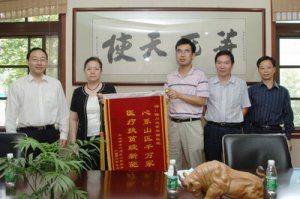 9月24日,乐山市金口河区政府蒋副区长率该区卫生局党政领导,在省政协有关负责人的陪同下,专程来我院送锦旗,表达对我院“博士快车服务团”赴金口河义诊和讲学的感谢,院党委郑尚维书记、邓绍林副书记、周瑞敏副书记和有关职能部门负责人接待了蒋副区长一行。