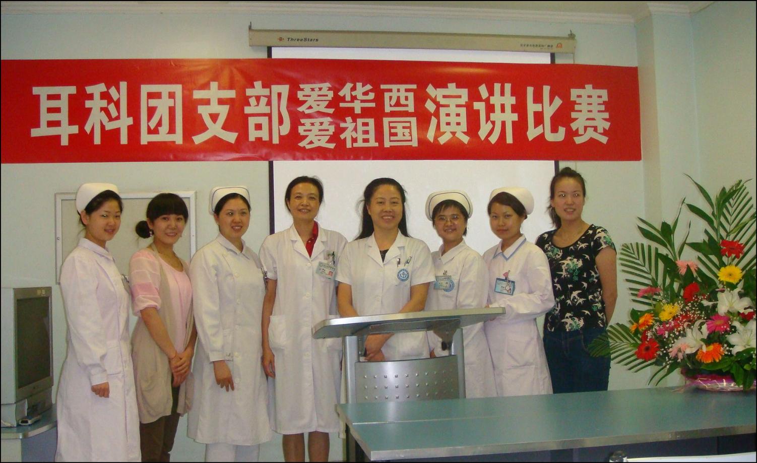 为了庆祝建国60周年,响应院团委关于在广大团员青年中开展“我与祖国共奋进,我与华西同发展”主题团日活动的号召,9月21日,耳鼻喉团支部在科室示教室开展了“爱华西,爱祖国”青年演讲比赛。