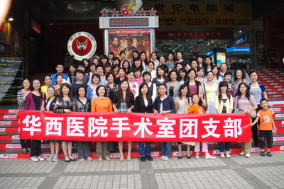 在祖国60华诞之际,为了加强团员青年的爱国主义教育和思想道德建设,引导团员青年增强报效祖国、服务人民的责任感和使命感,激发当代青年的爱国热情,手术室团支部于9月20日在东方世纪电影广场组织团员青年观看了国庆献礼影片《建国大业》。本次活动得到了医院团委及手术室领导的大力支持,科内广大党员、团员及青年群众热烈响应,共有100余人参加了观看电影的活动。