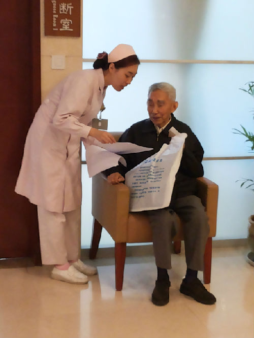 老年/特约门诊护理团队主动关心老年人的生活、健康和安全。护士们和老年病人零距离接触,面对面交流,对老年人的常见病、慢性病的综合预防进行一对一健康指导;组织老年人进行个人生活方式和健康状况评估,及时发现健康风险因素,以便老年疾病早发现、早诊断、早治疗,保障老年人的生命安全。同时,重视老年患者心理关怀和精神慰藉,重点关怀“高龄”、“空巢”患者的心理健康状况,及时与他们交流,并进行心理疏导,像对待自己的父母一样处处关心他们的治疗和饮食起居。护理团队对老年病人的热情接待、主动关心、真诚沟通和尽力帮扶,受到了广大老年患者和家属的一致好评。