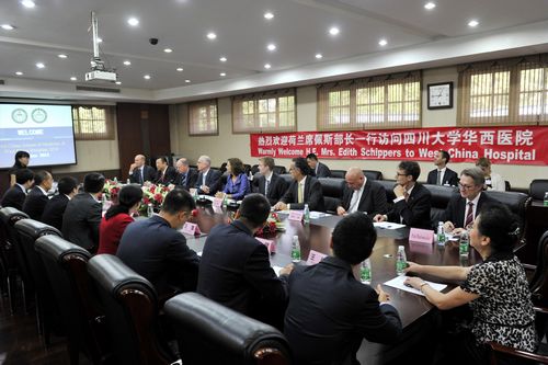 9月13日上午9点,荷兰卫生、福利和体育部部长席佩斯女士一行在四川省卫生厅沈骥厅长、王雪副厅长等陪同下访问华西医院,李为民院长在办公楼三会议室会见了席佩斯女士一行。