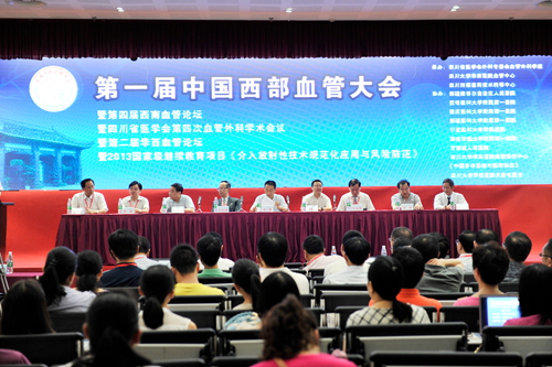 第一届中国西部血管大会于2013年8月3日-4日在我院新八教多功能厅隆重召开,此次会议由四川省医学会主办,四川省外科专委会血管外科学组、我院血管中心和四川西部医药技术转移中心承办,四川省血管外科学组组长、我院血管中心暨血管外科主任赵纪春教授担任大会执行主席。大会邀请了全国各大医院和西部地区共计26个省市自治区的130余位血管外科专家和血管疾病相关学科的专家同仁做了大会发言,加上来自西部10个省市自治区的血管病相关学科的专家同仁共约共400余人参加了大会。