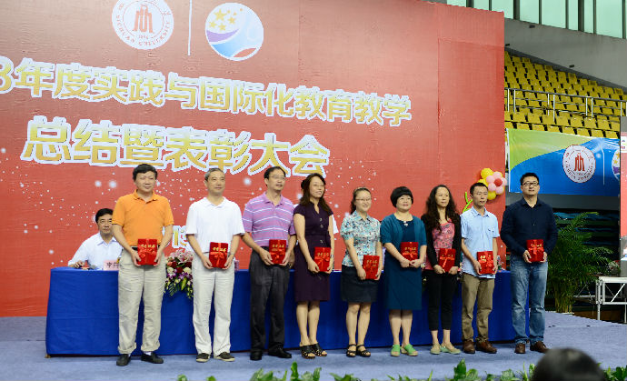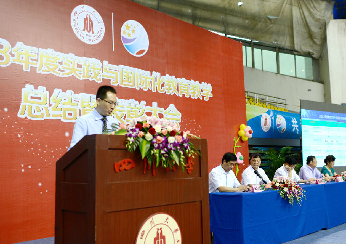 7月10日上午,四川大学“2013年度实践与国际化教育教学总结暨表彰大会”在学校望江校区体育馆隆重举行。校党委书记杨泉明教授,副校长石坚教授、步宏教授,校党委副书记、纪委书记徐兰教授,校党委副书记李向成教授出席会议、学校督导委成员,各相关部处、学院师生代表参加会议,我院万学红副院长、李正赤副书记及教务、学工部门负责人参会。