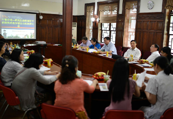 5 月 14 日中午,四川大学教师教学发展中心“午餐沙龙教学研讨会”在我院八教会议室成功举办。步宏副校长、教务处兰利群副处长、教师教学发展中心伍登学副主任等学校领导、我院及基法学院教学管理人员、课程负责人代表20余人参会交流,大家围绕着“研究生助教辅助下的探究式教学模式研究与实践”之主题,从探究式教学模式、研究生助教管理、助教工作范围、助教考核等多方面进行交流,提出问题、困难、经验及建议。