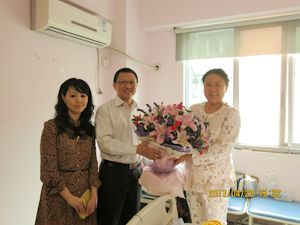 4月28日下午,医院党委李正赤副书记等专程前往成都市妇幼保健院,看望了刚刚生完孩子的我院前线医疗队队员、肖海涛的爱人陈晨女士。