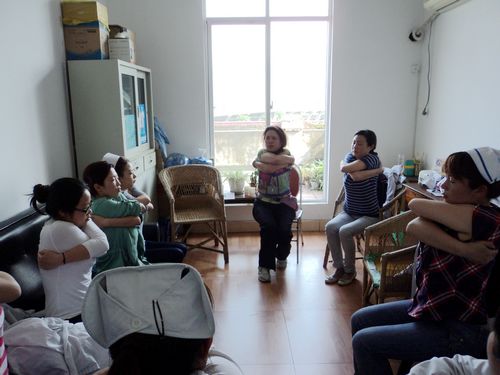 2013年4月27日下午3:30,华西心理卫生中心资深心理治疗师廖红为雅安市精神卫生中心护理人员作团体心理辅导。针对他们病员多,工作人员少,休息不好,压力大,精力不够,多重角色的角色冲突,无力、孤独感以及烦躁做心身稳定化干预,减压放松的行为指导,并给与一些具体的建议,减轻孤独,释放负性情绪。结束的时候,护理人员表示,通过辅导学会了如何放松自我,适应艰苦的工作环境。