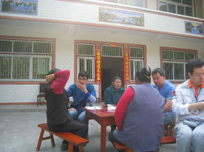当天晚上,卫生厅抗震救灾指挥部部署了地震后时代的医疗救援工作重点,从前期的救援抢救生命转向了卫生防疫和医疗保健,作到“送医到村、送诊到户,防病到人"。第二天一大早医疗队走出帐篷,投入一天积极的巡诊医疗当中。从蜂桶寨乡的民和村到新康村,路途遥远,经过盘旋崎岖的山路和飞石落下的悬崖,大家终于抵达了位于山顶的新康村,一天之内走访了2个村,7个队,诊治80余名村名,将医疗服务送达每一位灾民家中。当地灾民朴实而热情,邀请队员们到自己家里吃放。队员们婉言拒绝,大家出发前一致决定,不论多苦多难都不给当地灾民添加麻烦。心理卫生中心的张骏老师和黄亚玲治疗师一直坚守在宝兴海南中学灾民安置点,为团体和个人进行各种形式的心理评估和咨询90余次,成功入户进行心理干预两次,将早期隐患化解,受到灾区群众认可。