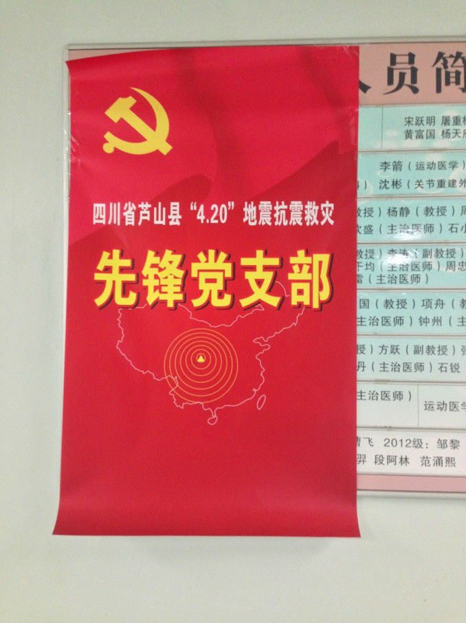 4月20日8时02分,四川省雅安市芦山县突发7.0级地震,成都及周边地区震感强烈。外科立即启动应急预案,外科学系和外科党总支全体干部、党员迅速投入抗震救灾工作,各科室停止周末的择期手术,暂停收治择期病人为接收地震伤员准备床位;紧急成立应急救援队,由外科党总支和系主任挂帅,带领医生每天24小时到急诊科轮流值班,抢救和分诊地震伤员,共派出115人次参与值班。