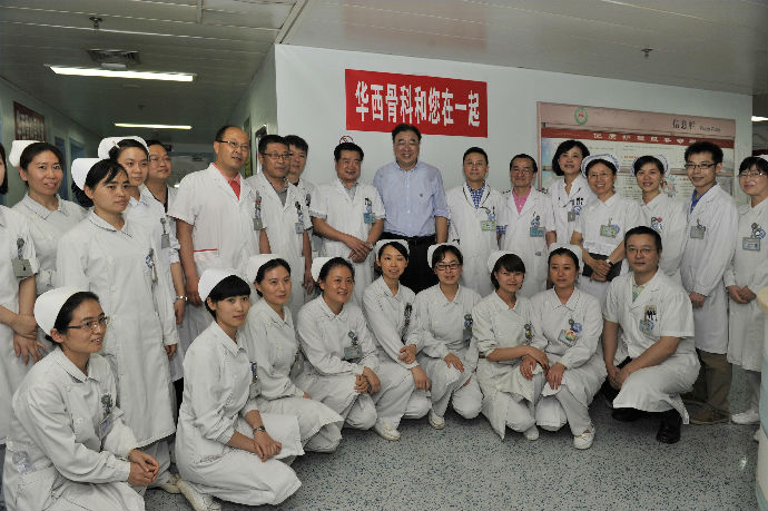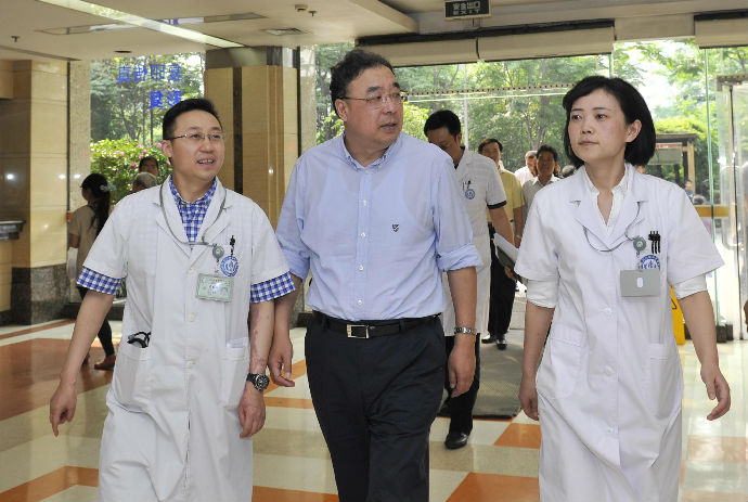 4月27日下午4点,国家卫计委马晓伟副主任一行在四川省卫生厅沈骥厅长等的陪同下,来到华西医院看望地震伤员、慰问医务人员,院长李为民、院党委书记敬静等院领导一边陪同看望慰问,一边汇报了华西医院抗震救灾医疗救援的工作情况。