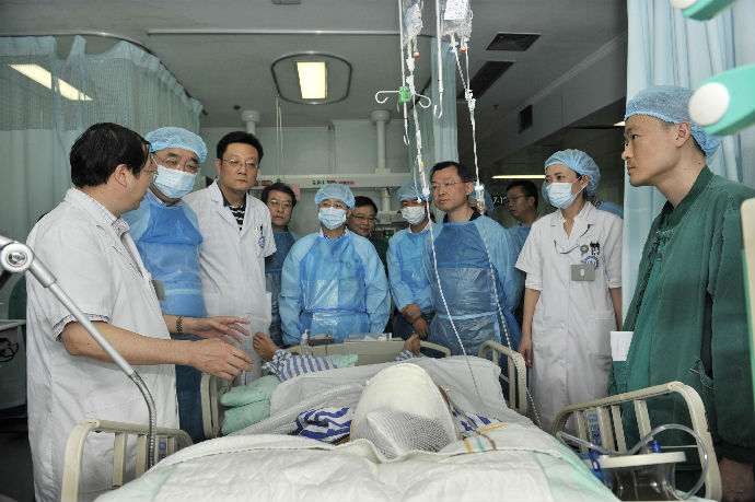 看望完病人后,马晓伟副主任对华西医院李为民院长、敬静书记,以及在场的医务人员说,这次抗震救灾华西医院充分发挥了卫计委直属医院的重要作用,充分发挥汶川地震的经验,科学救治,效果很好,也取得了阶段性胜利,他希望全体医务人员再接再厉,争取全面完成伤员救治的光荣任务!